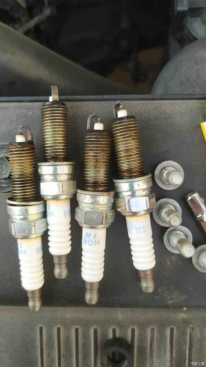 用M16套筒拆火花塞,依次拆卸,拆一个装一个。原车为ngksilzkr6b10e铱铂金火花塞,外观来看,电极间隙并不大