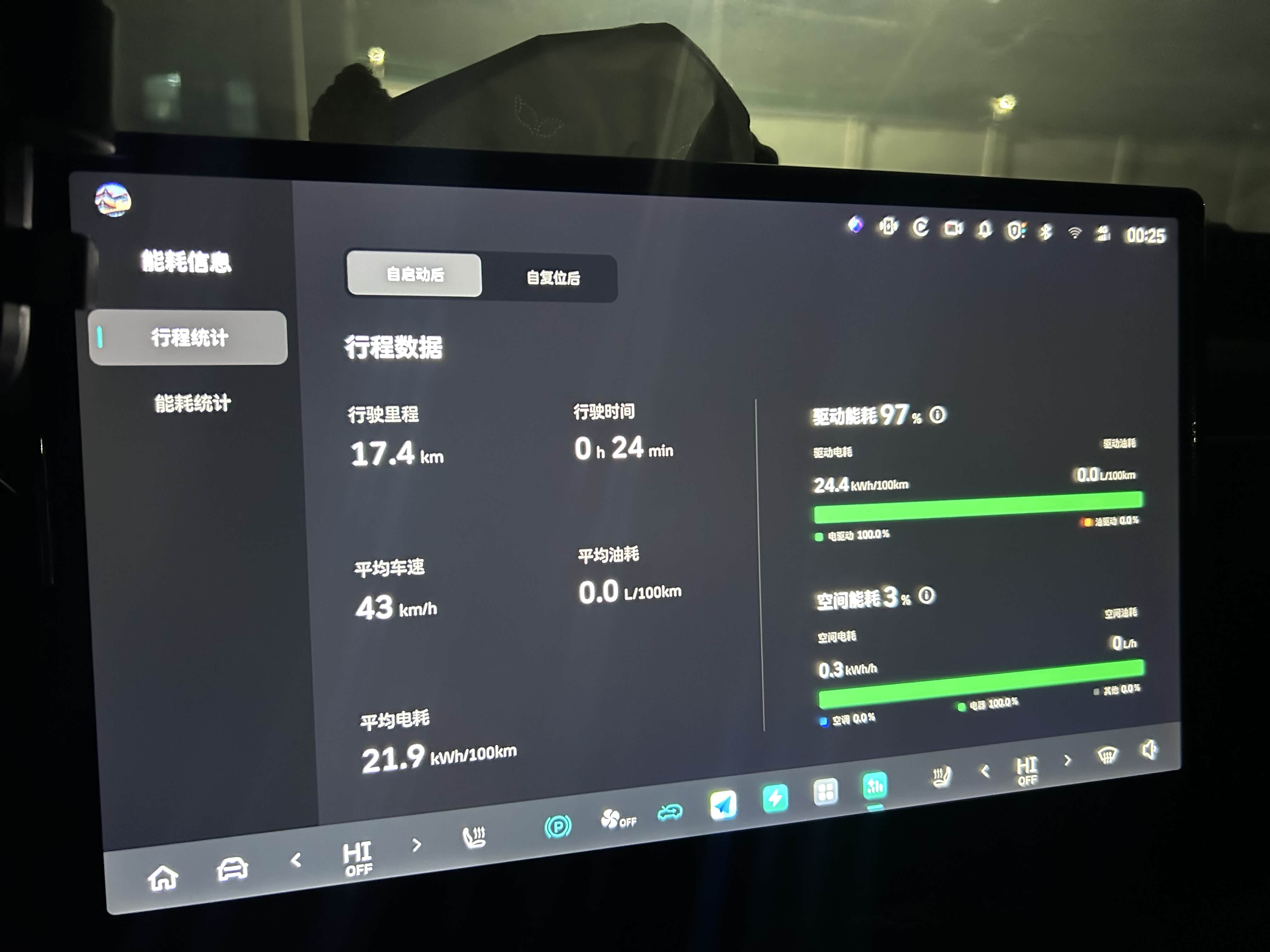 能耗表现也有惊喜。最近气温降到-7℃,在纯电优先模式下,我跑了17.4公里的通勤路程,平均电耗21.9kWh/100km。对比升级前同温度、同路况下的表现,电耗降低了约1.2kWh/100km,续航达成率有所提升。