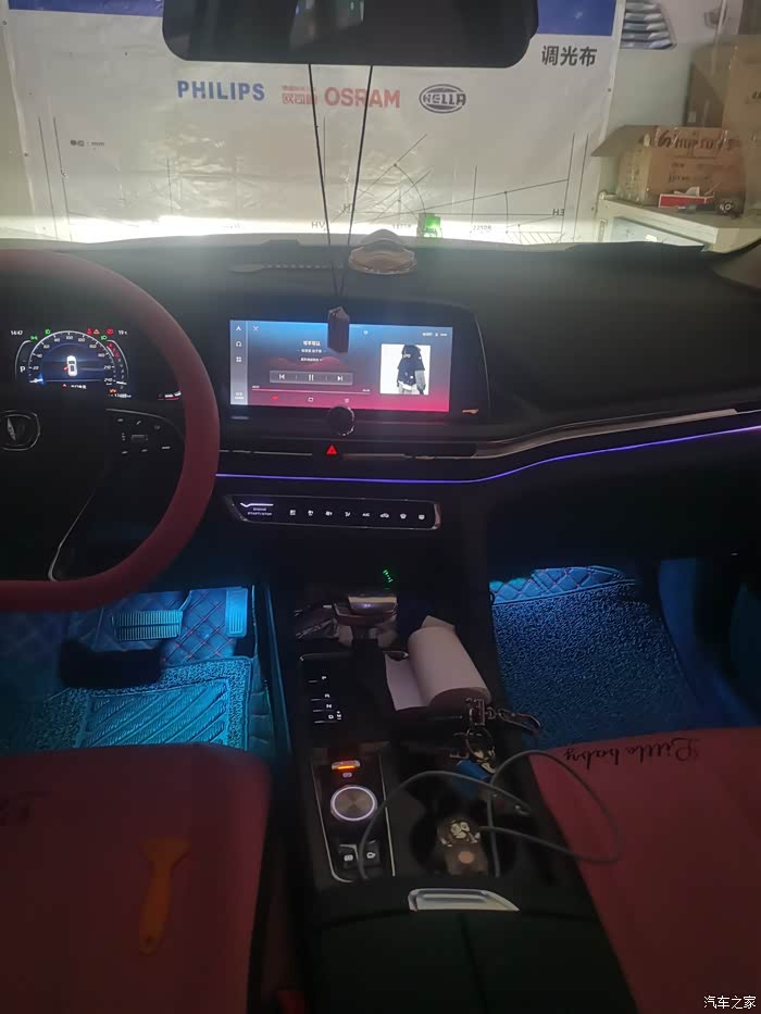 前段车友聚会看到朋友的旗舰车型有原车自带的氛围灯感觉特别漂亮,看着很高档,忍不住心里的躁动,回来就开始研究能不能也给自己的车加装一个,在网上看了好多,也去本地的专业改灯的店里去咨询了一下,最后选择还是去专业的改装店里施工的,不论是灯的质量还是施工的过程,都能看得到。自己也放心。
