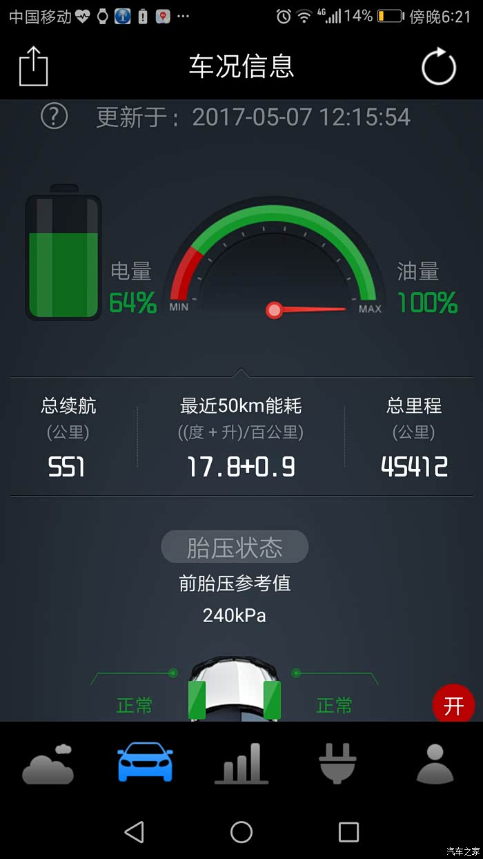 快到家里时,已经只有14%电了,发动启动了,但只几百米,直接强制EV。总结:换了电池之后,近70公里的远程,唐80公里的纯电应该没问题,况且全程空调开大灯呢。