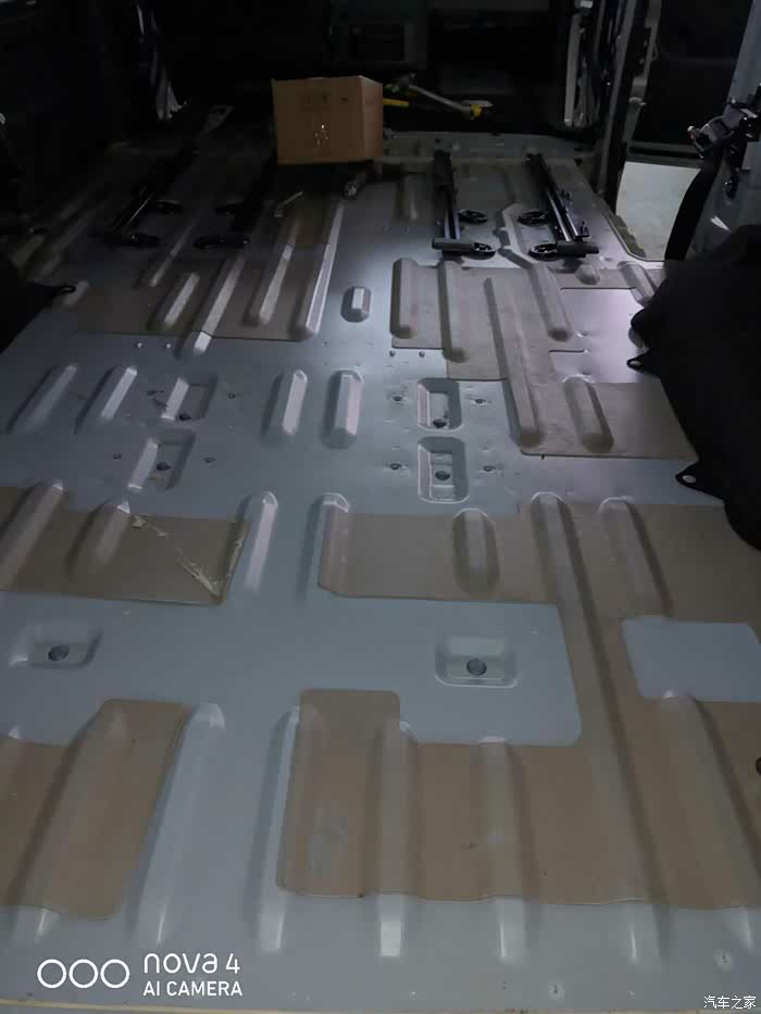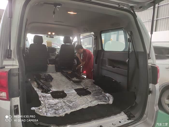 底盘进行座椅拆卸,甚至连垫子都被揭掉。可以看到瑞风M4的底盘情况,将隔音棉和止震板添加之后,就开始了木地板的拼接!