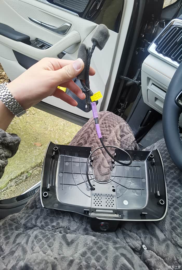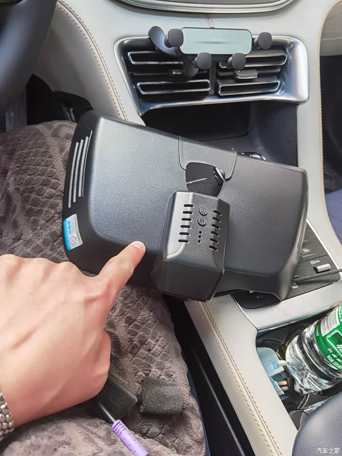 直接附上安装好的效果,主机卡扣固定,不需粘贴,不影响原车自带的记录仪。这个也不影响三电质保,无损安装