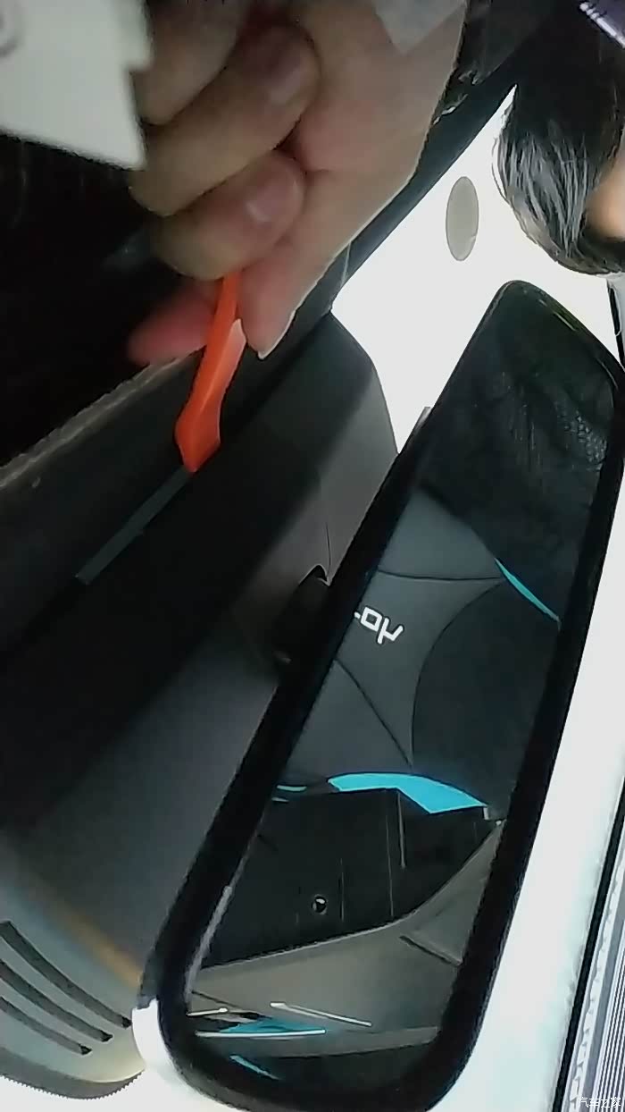 宋plus dmi原车安装记录仪前,黑色的后壳取下来,用送的撬棒工具很好操作。步骤是先把上面小盖子往下拿下来,再把大壳子左右两边撬开点,往下直接就可以拿下来