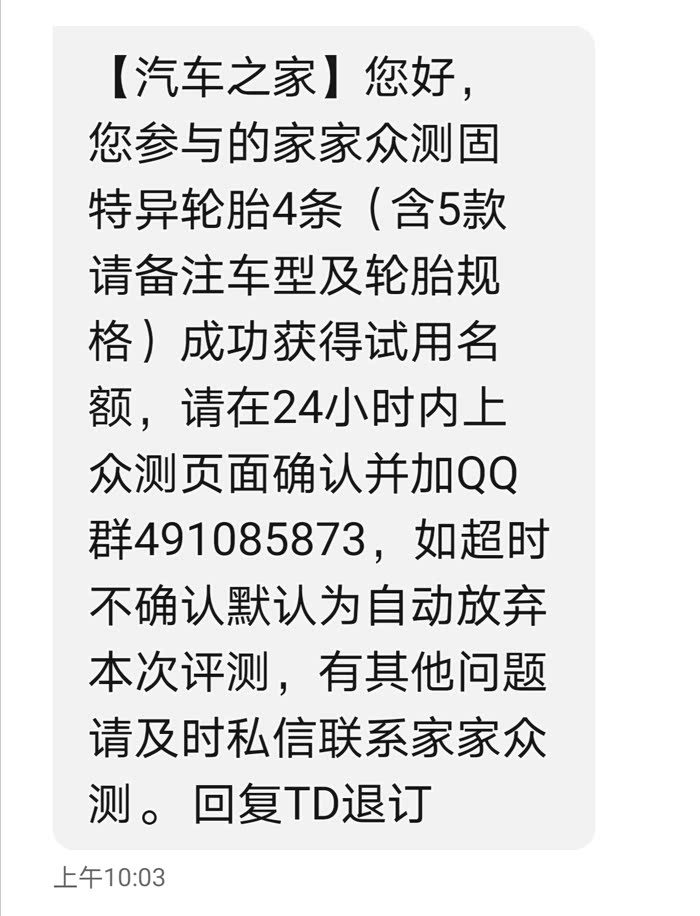 接到之家的短信,非常开心、非常激动,因为是第一次,第一次总是很激动的,还是大轮胎。
