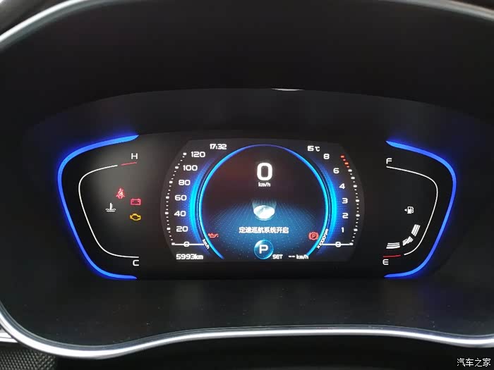 按下“巡航开启/关闭/解除”键,巡航功能开启,仪表巡航指示灯显示灰色