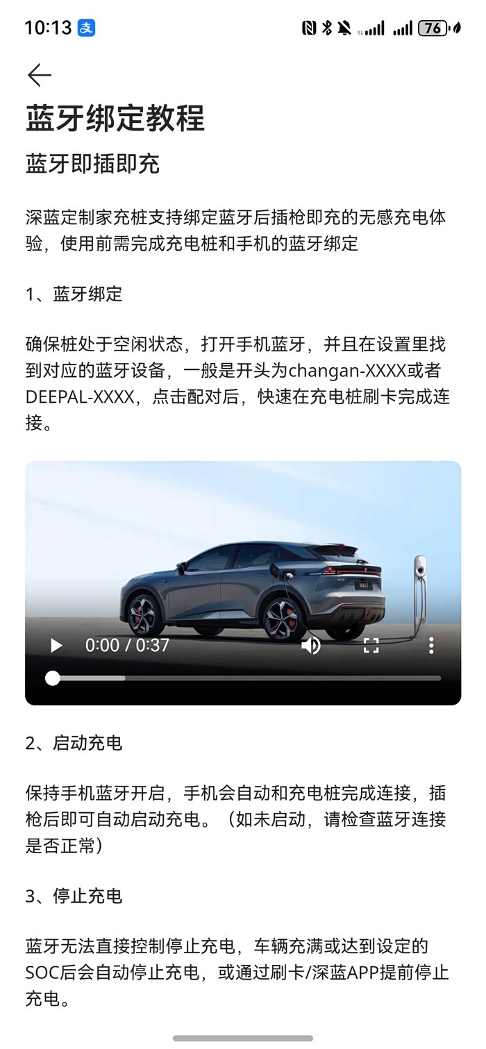 这是一个推荐,深蓝充电桩的推荐,使用深蓝充电桩已经一年多了,感觉不管质量还是颜值都比较在线,所以向广大的智界车主推荐。用着很放心,没出现过什么问题。它本身有三种充电方式,刷卡(共有两张卡片)、蓝牙、远程启停(APP操作)。用了一年,一直使用的APP进行充电桩的启动,然后突然在充电界面发现了“绑定蓝牙,即插即充”的字眼,然后就准备尝试一下。结果搜索到了蓝牙死活没连上,最后才发现绑定蓝牙需要刷卡才可以,最终成功了。绑好蓝牙后,只要把充电枪插到智界的充电口,不需要再进行其他任何操作,充电桩即可运行准备充电。如果车辆预约了时间会到达预约时间后开始充电,非常方便。我不知道其他充电桩有没有这个功能,但我真的觉得这种蓝牙操作很方便,所以推荐大家这款充电桩。关于车或者充电桩有不懂的可以随时问我,欢迎交流!