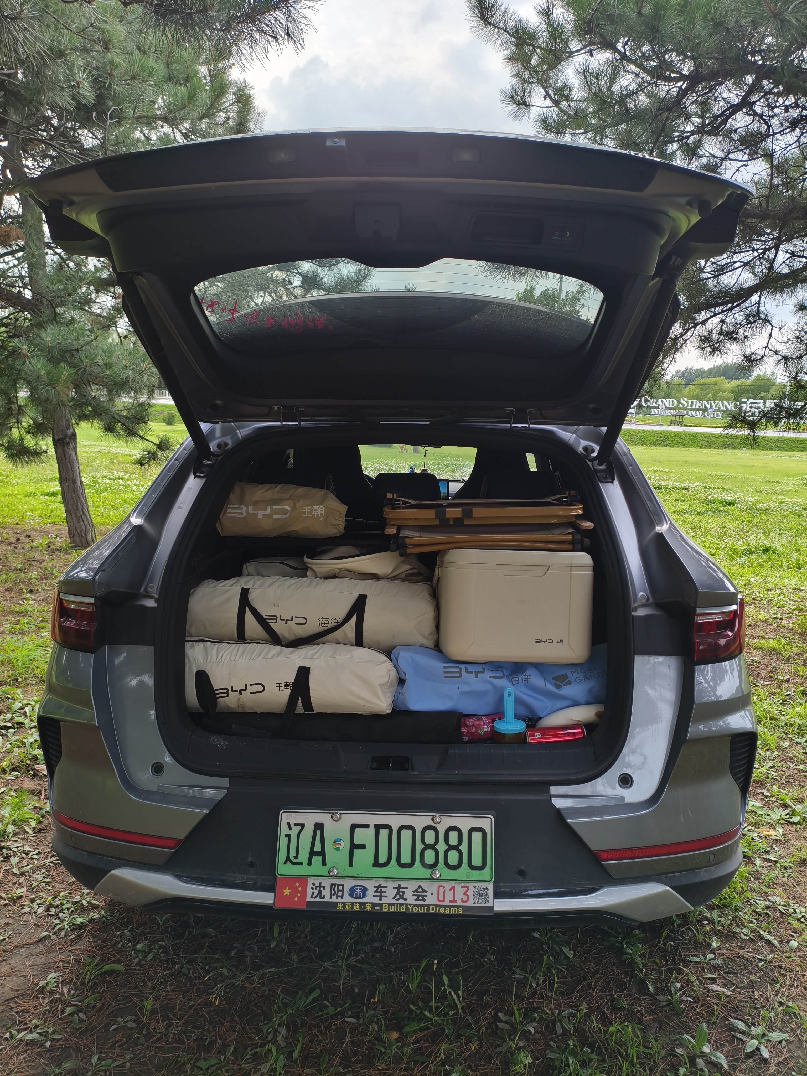 来到指定位置,先卸下塞满后备箱的BYD露营装备(其实每次出门露营都装的很满,但不一定都会用到)。