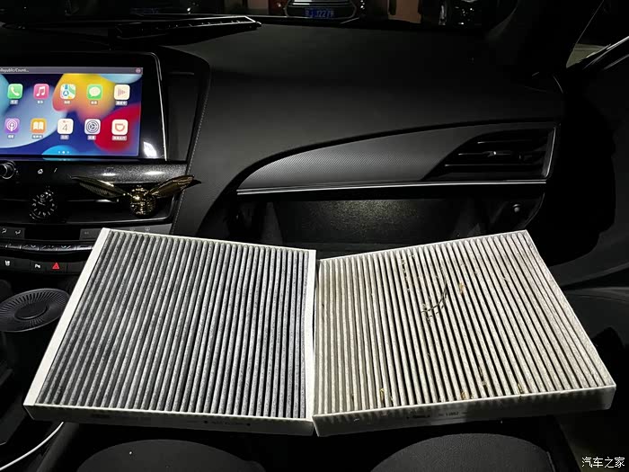 左边是新的滤芯,右边是拆下来的,杂质很多