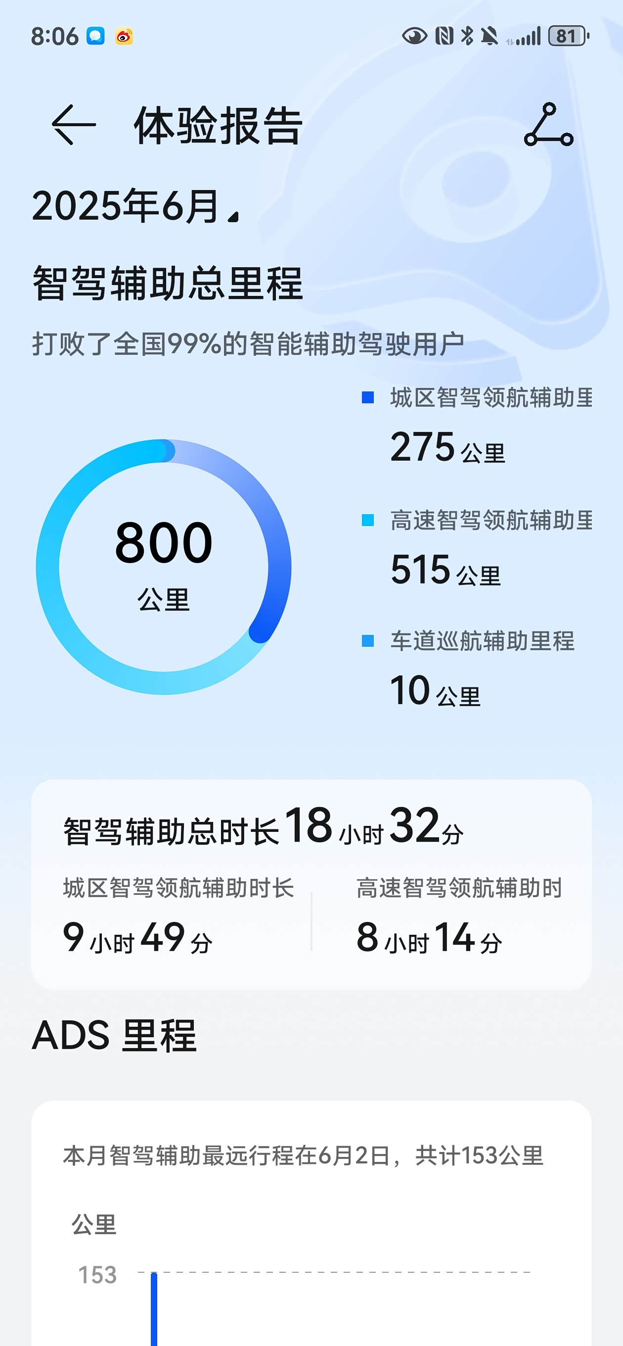 另外,华为智驾系统主动安全aeb的功能,感觉还是很牛的,网上也有很多视频。车友已有系统自主刹停避免了鬼探头和追尾的案例,我也体验过追尾风险出现时的安全警示音,我相信如果我没有及时反应,它就会帮我刹停或避让。自主泊车对它来说是常规操作,非常成熟了;代客泊车功能很酷炫,让人觉得未来已来的感觉,在家人朋友同事前显示一下,会给你带来满满的情绪价值。对了,使用代客泊车功能后,可以去华为ADS应用中领取一个600万的保险保障,还是非常让人安心的。