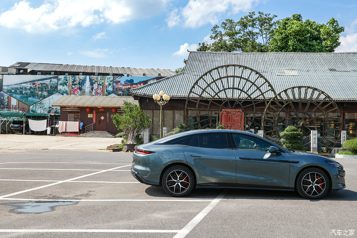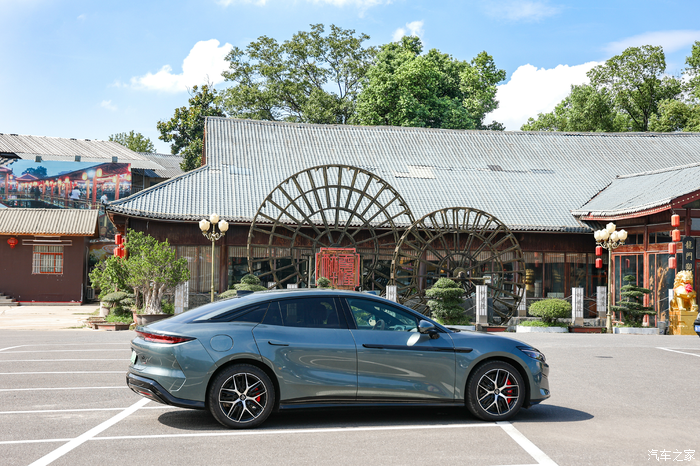晚上跟闺蜜一起吃“漂亮饭”,到达宜家古香古色的饭店,阳光把仿古建停车场的青瓦、木柱晒得暖融融。远处飞檐翘角挂着红灯笼,巨大木质水车慢悠悠转着,我开着汉 L DM 驶入时,总觉像把现代 “移动小家”,泊进了旧时光的画里。