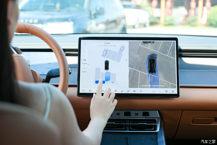 中控屏弹出泊车界面,指尖点“代客泊车”,车子便像有了 “小脑瓜”,慢悠悠打方向盘往车位钻。周围车位间距不算宽,但汉 L DM 的全景影像把每寸距离看得透亮,屏幕上虚拟蓝色轨迹线跟着车位线拐,方向盘自动转,没一会儿就“顺顺当当” 停进空位。我坐在车里没动,看着它自动完成停车,朋友一脸赞叹。