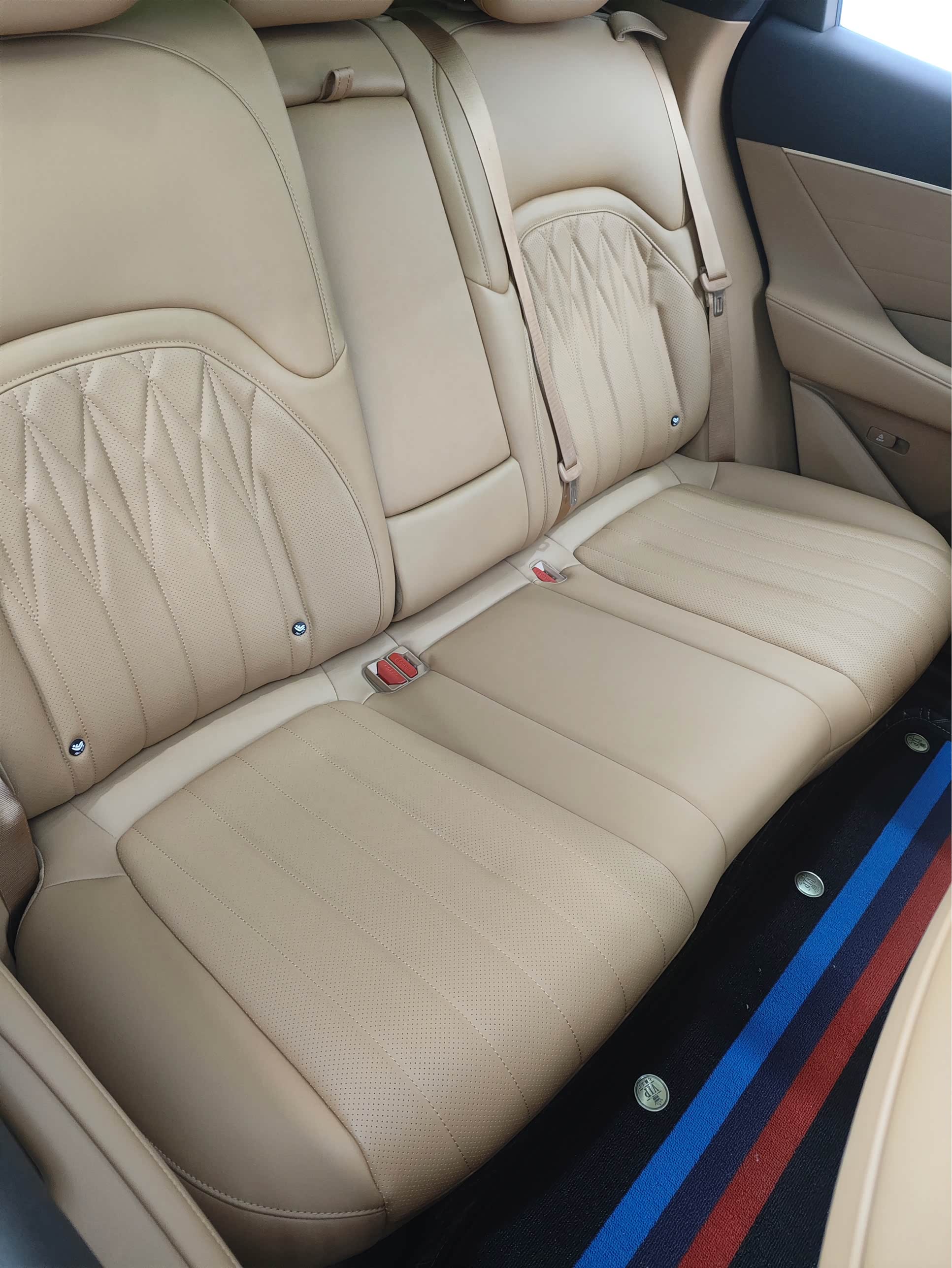 内饰是我们一眼相中的简洁风格,浅橙色仿皮质座椅不仅颜值高,还特别好打理。家里小孩坐车爱折腾,偶尔踢到座椅,拿湿布一擦就干净,不用费心思打理。中控大屏操作很丝滑,语音控制识别率也在线,路上随口说句“打开空调”,系统立马就响应,不用手动操作,开车也更安全。