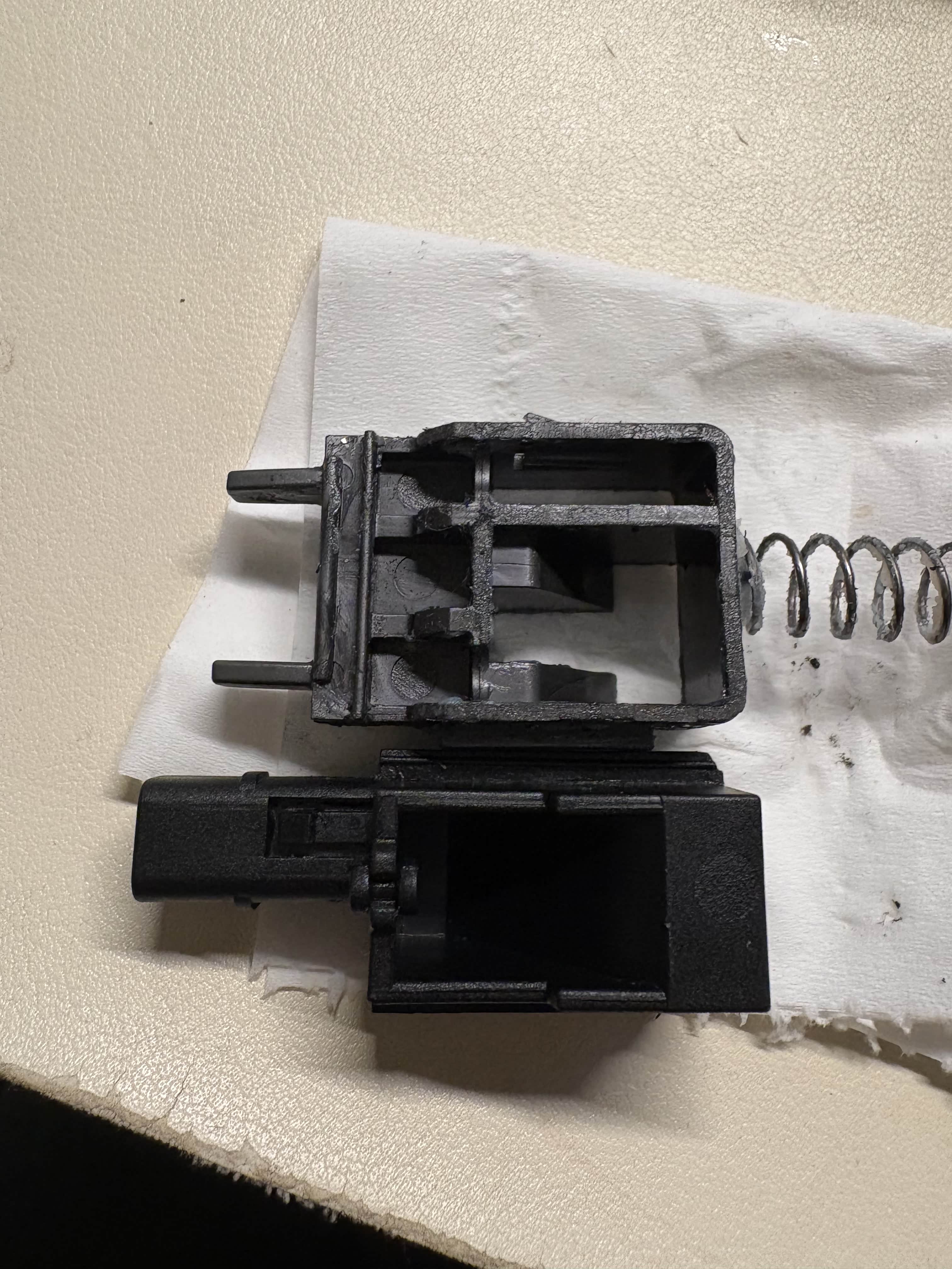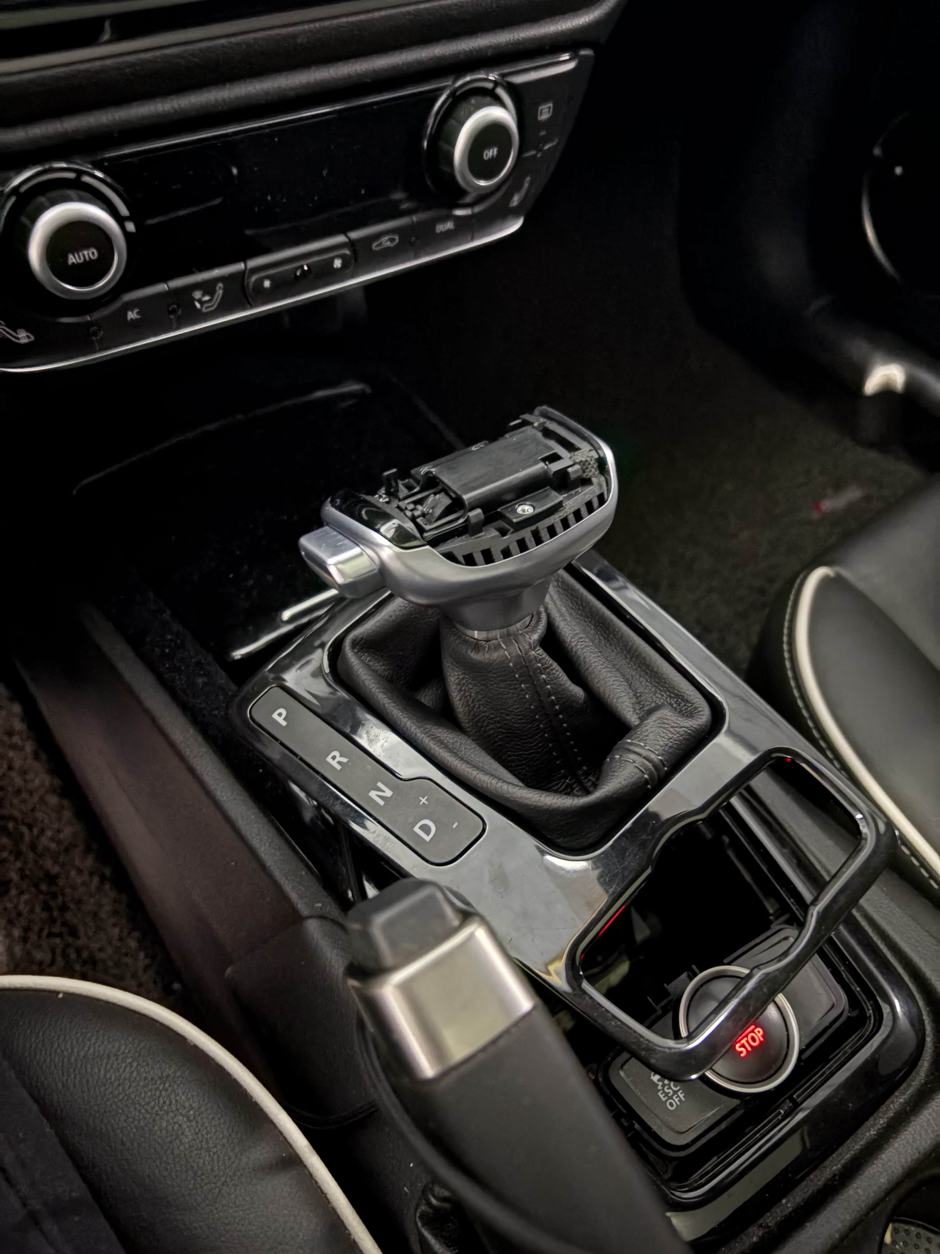 手上刚好有个限闲置的通用档把,是当初用在福克斯上的,下压式解锁。不过仔细观察了下,参造原厂样式,通过切割打磨可以改成上提式的结构。虽然确实很麻烦。
