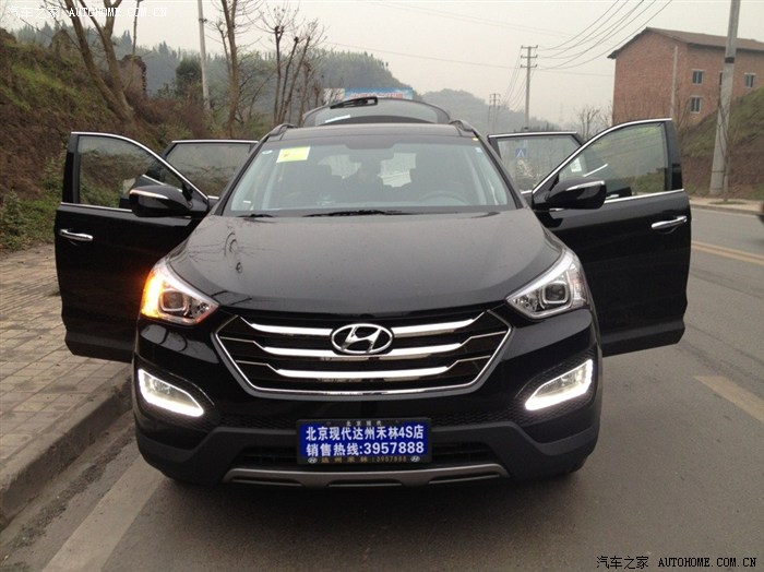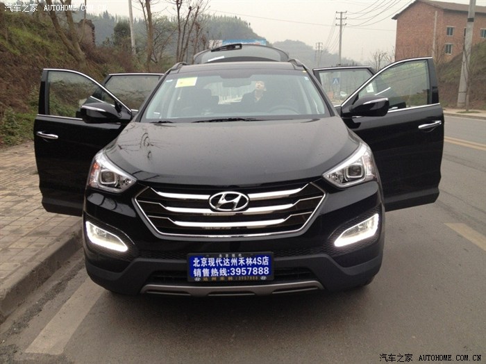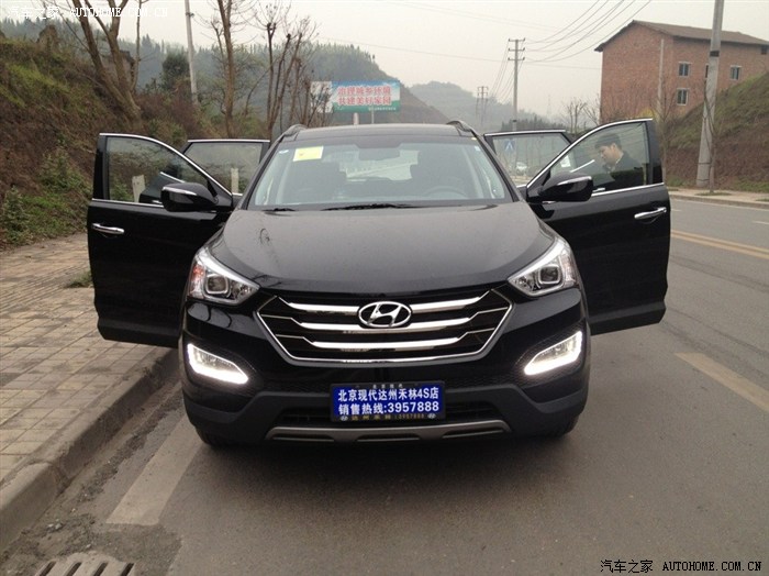 第一次在论坛上发帖。希望小编给个精。在买这个车之前也和很多朋友一样,纠结纠结再纠结。看过宝马320Li 奥迪Q5 雷克萨斯ES300H 等等。看了很多车。歌诗图的空间外观都很不错,但是内饰就让我犹豫了。和朋友谈论各种车的时候无意中就提起了全新胜达。之前没发布的时候在网上也看过这个车。只是没的太注意,和朋友聊的时候就觉得还不错。于是就到了4S店去看。她给我的第一眼感觉特别的顺眼,特别的酷。硕大的前脸和进气格栅。漂亮的LED日间行车灯。比较过CRV。感觉价格差不多的情况下为什么中控差距就那么大呢。全新胜达的人性化功能实在是让我意想不到。2.4L两驱智能的。该有的功能都有,经过多天的纠结比较。Q5价格超出了一点。而且感觉保养费略高了一点。最终我还是选择了她(全新胜达)。在第一次去4S店的时候有白色现车。和导购GG谈价格的时候犹豫加装的东西上不太满意。就犹豫了,回到家纠结了3天后还是决定去取她回家,但是万万没想到的是我再一次和朋友家人一起去的时候那漂亮的小白已经成为别人的了,我那个郁闷啊,展厅有个黑色2.4L 5座版 问了导购GG什么时候会再有白色,回答我的是定车一个月。我那个去啊。一个月。我实在是等不了了,于是就果断的提了黑色,其实黑色也蛮好看的。钟爱她的全景天窗。前脸的一切。裸车24.98万。加装了导航6000,脚踏板2000.最后价格定在优惠2000的脚踏板上全款提车。刷卡,贴膜,开车走人。郁闷的是4S店说先给我一把钥匙,后面等几天给我另外一把,郁闷啊郁闷!好了。先发下照片,技术不好别喷!