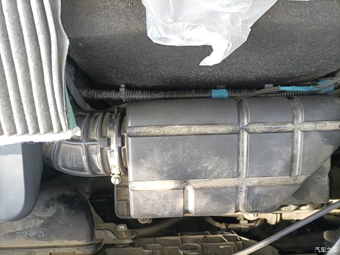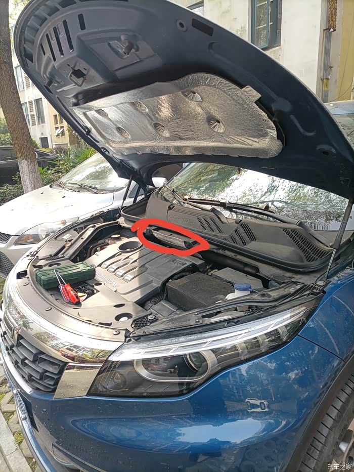 首先映入眼帘的是这样。这个空调滤芯盖子可以往上推,打开。(最好在车内按两下启动开关不用着车,然后开外循环打开此盖子)