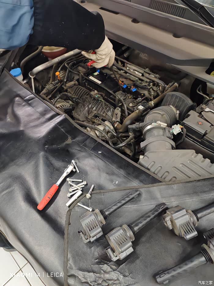 专用火花塞套筒师傅很轻松就拆卸下来了,具体型号多大的我没问,看这简易程度,有一定动手能力的车友可以自己更换。但是一定要注意选择正品配件。