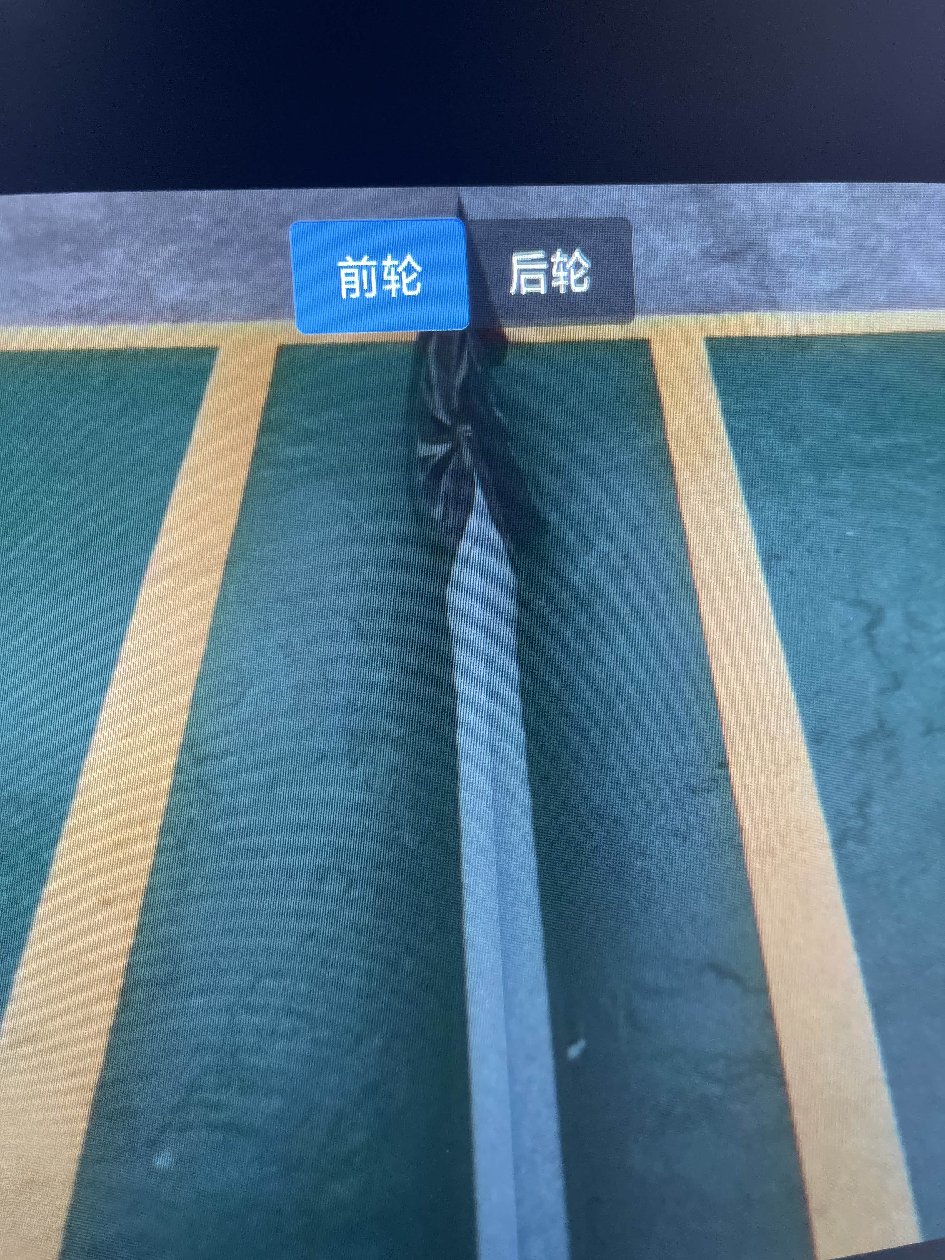 轮胎前面的路况被文字挡住了
