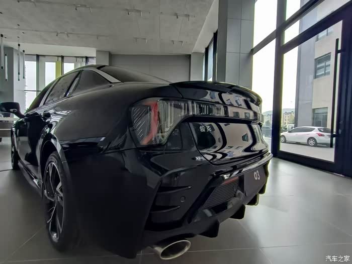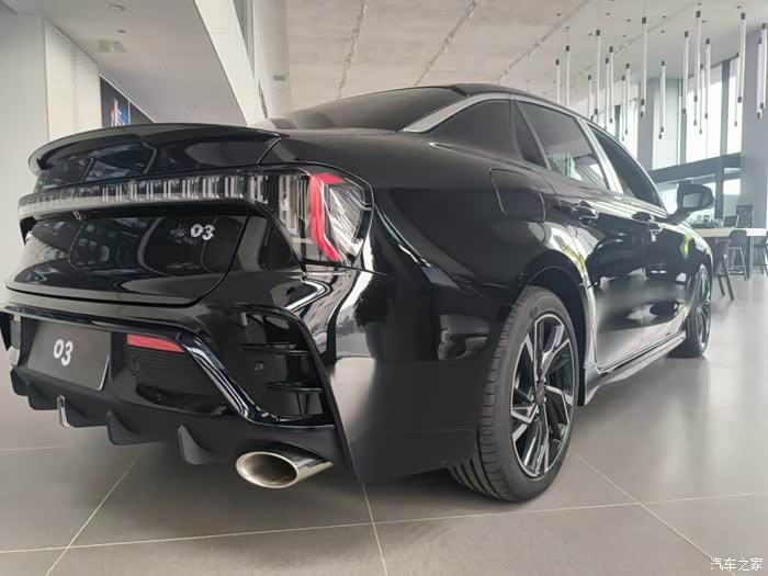 首先来聊聊新款03的外观设计,它的车头部分可以很明显的看到跟老款是有很大区别的,虽然说依旧是用了这种上下分体式进气格栅,但他下方的这个进气口,明显它的面积是要大很多,这可能跟他的动力改变有一定的关系,另外呢就是他整个前杠的设计很会更加的夸张显得更加犀利,前杠左右两边这个雾灯框的设计会显得更加大胆一些,整体给人的感觉更加运动。另外就是灯组也有一些变化,上方这个LED灯带会更长一些,而且轮廓会显得更加规整一些,总体来看是比老款显得更加激进凌厉一些。而且新款整个灯组会有一种交互的体验,在我们锁车以及开锁的时候灯组会有一个交替闪烁的灯语,会更加有仪式感。另外,车身在侧面看大体上是没有什么太大的变化,它的后视镜包括它的门把手,另外就是它的小鸭尾,都采用了这种亮黑的处理,这是一个细节比较提升运动氛围。那关于车尾部分的变化最明显的,就是这一条贯穿式的LED尾灯了。灯带内部是用上了这种透明的,类似能量块的设计,内部的领克logo也是可以发光的,让新款03更加有辨识度。