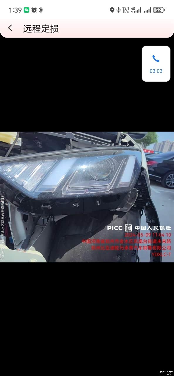 然后我就把车留在了4s店,期间服务人员通过微信给我发车子的受损情况。包括前保险,大灯组合好像都需要换。