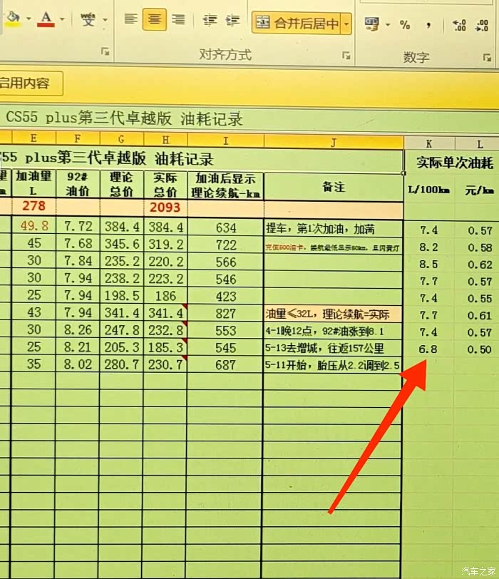 7、因为仪表盘油耗大部分是欢乐表,不太真实,因此本人从提车当天,便开始手工记录油耗数据……[ahl_偷笑]