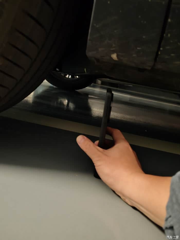 新能源车由于电池在底盘位置,所以特别怕磕碰到底盘,网上有很多事例。但是智己LS6底盘还是比较高的,这让人感觉安心。上图的手机是mate 60 pro,长度161.4毫米,加上手机壳的厚度,大概165毫米,但是上面还有2厘米左右的空间,也就是底盘整体离地间隙接近19厘米,磕碰可能性就比较小了。当然我胎压打到2.9,相对比较足,可能也稍微抬高了一点点。