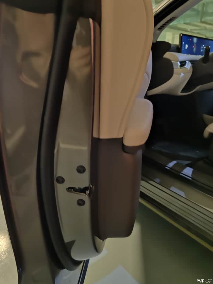 智己LS6的车重达到2.2吨,比同尺寸油车重很多,一方面当然是电池包带来的重量,但是另一方面则是车身用料极为扎实,坚固牢靠。打开车门,能够一下子看到厚实的门板,这对于侧向有很好的防护。虽然这一定程度上影响了车内的横向空间,但这是值得的。网上有一些智己LS6撞树,撞栏杆的照片,车身依然完整,表明结构强度确实让人放心。