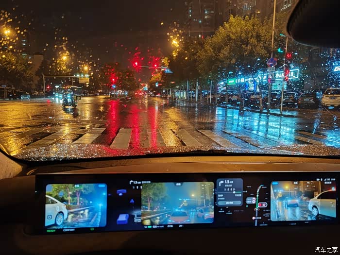 智己LS6的有一些实用的安全配置,最好用的就是雨夜模式了,当年自己在雨夜开车时,差点在右转时碰到急速驶来的电动车,想起来心有余悸,但是智己LS6的雨夜模式解决了所有的担忧,即便外边暴雨倾盆,前挡玻璃也始终清晰,3个画面完美兼顾了左右后方的所有盲区,让人心安。