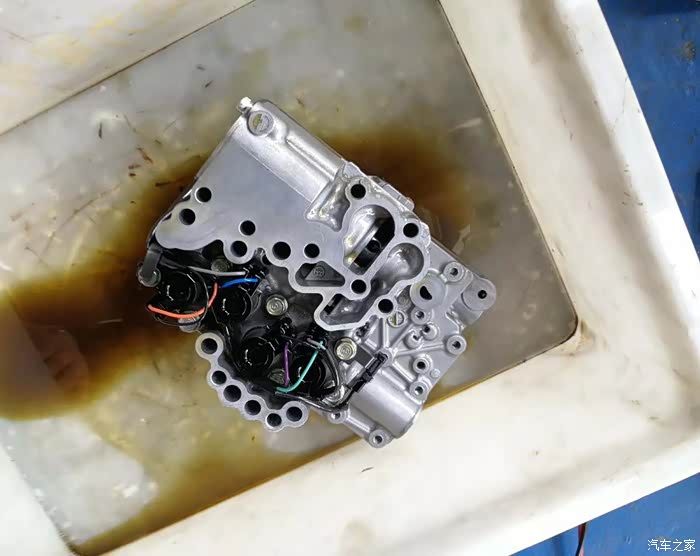 这就是故障码,故障码是P2764锁闭能率电磁阀电路底,店里师傅说这种故障在4s需要更换阀体总成,在他们这里换个电磁阀就能解决,还说换多了去了,全国各地的很多车友都找他发货,还说维修这种问题他们最专业了,然后报价小几千,同意开始拆解