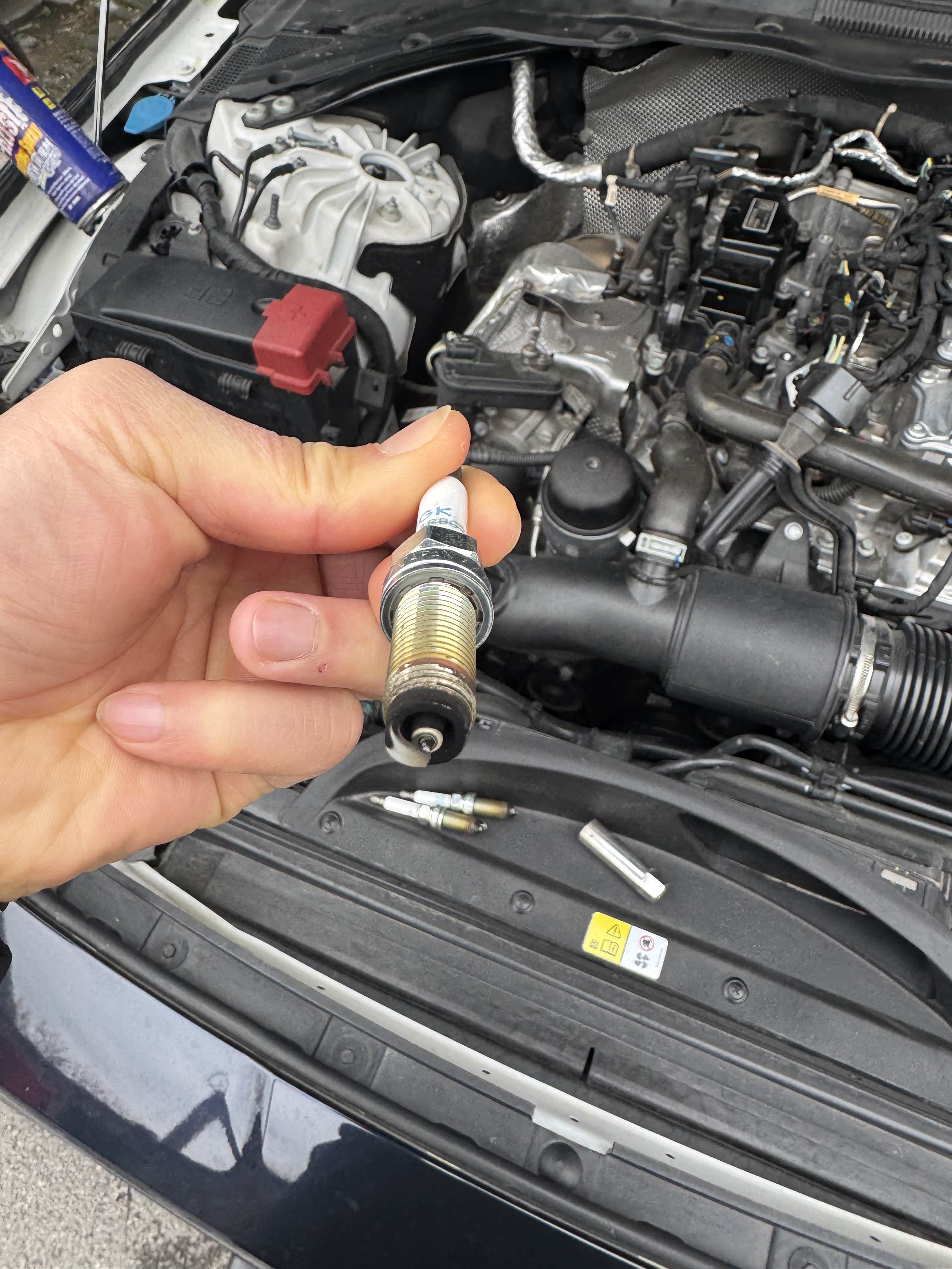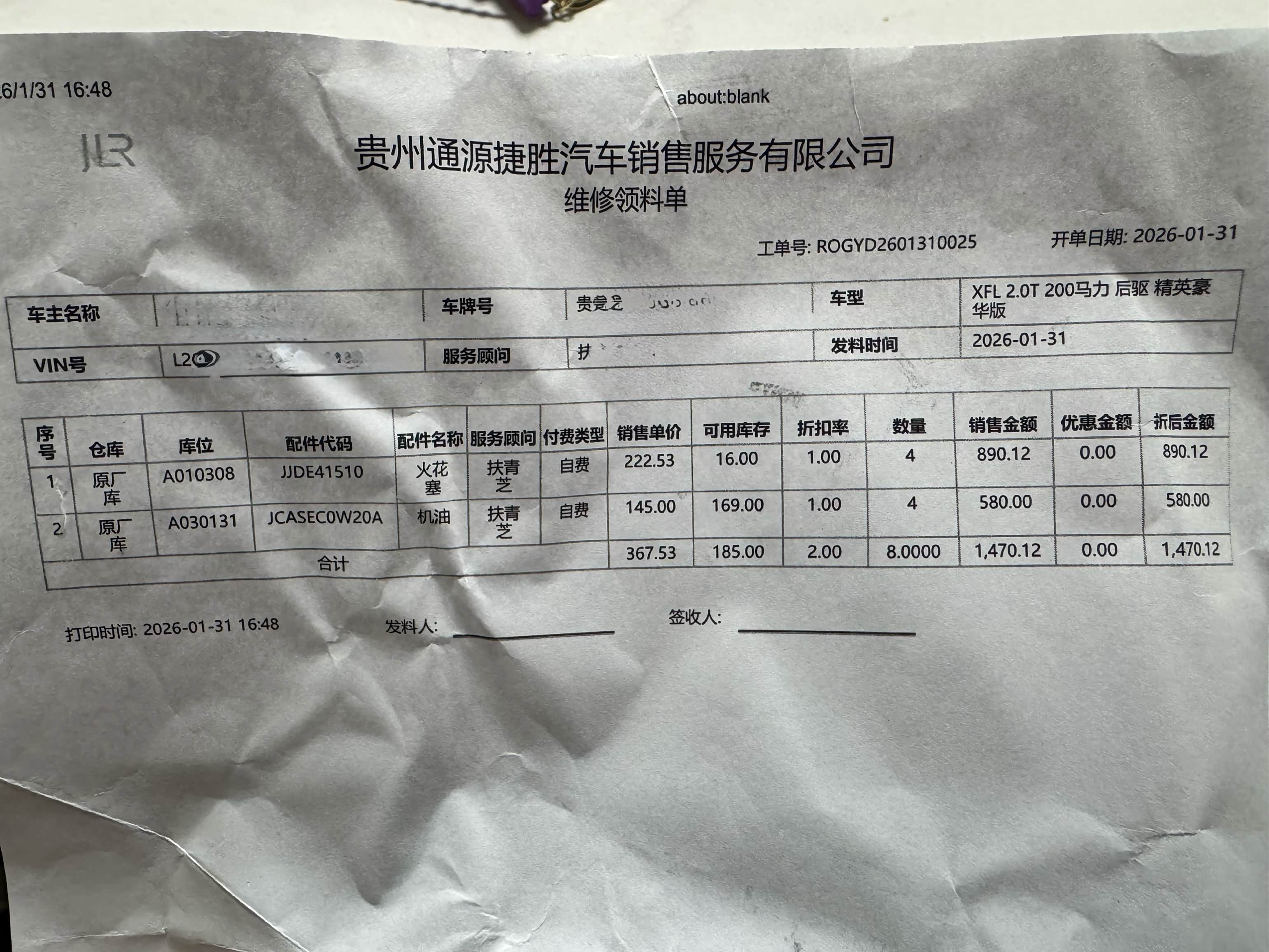去年去广东旅游,到百色的一个服务区时,停好车上厕所被一个车刮了右前门。后来在4s定损1500块钱。因为没有掉漆,只有一点点凹陷,所以一直也没去钣金、维修!但是4s店已经收到了保险公司的钱。这个钱如果在4s保养还不够一次,所以我就换成了火花塞和机油,最近才拿到材料。