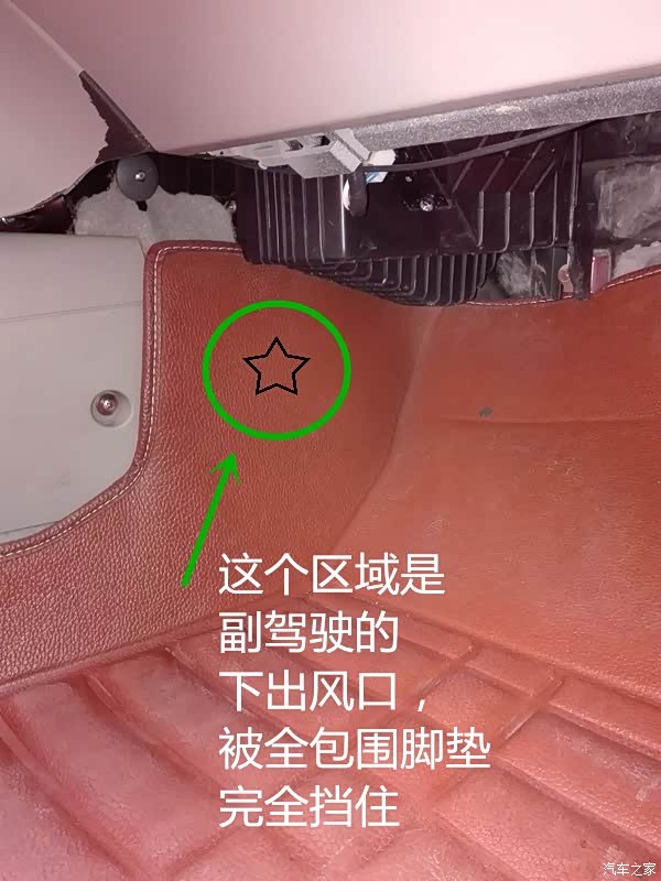 这就导致冷风或者热风有很大一部风都被直接挡在了中控台内部,