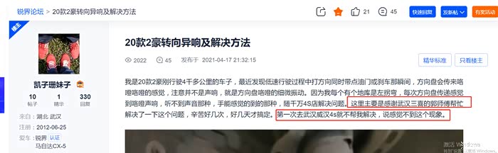 然而问题还是要解决,在论坛翻遍所有异响的帖子,这个帖子给了我很大的启发,不但问题差不多,而且4S店选择也几乎一模一样。
