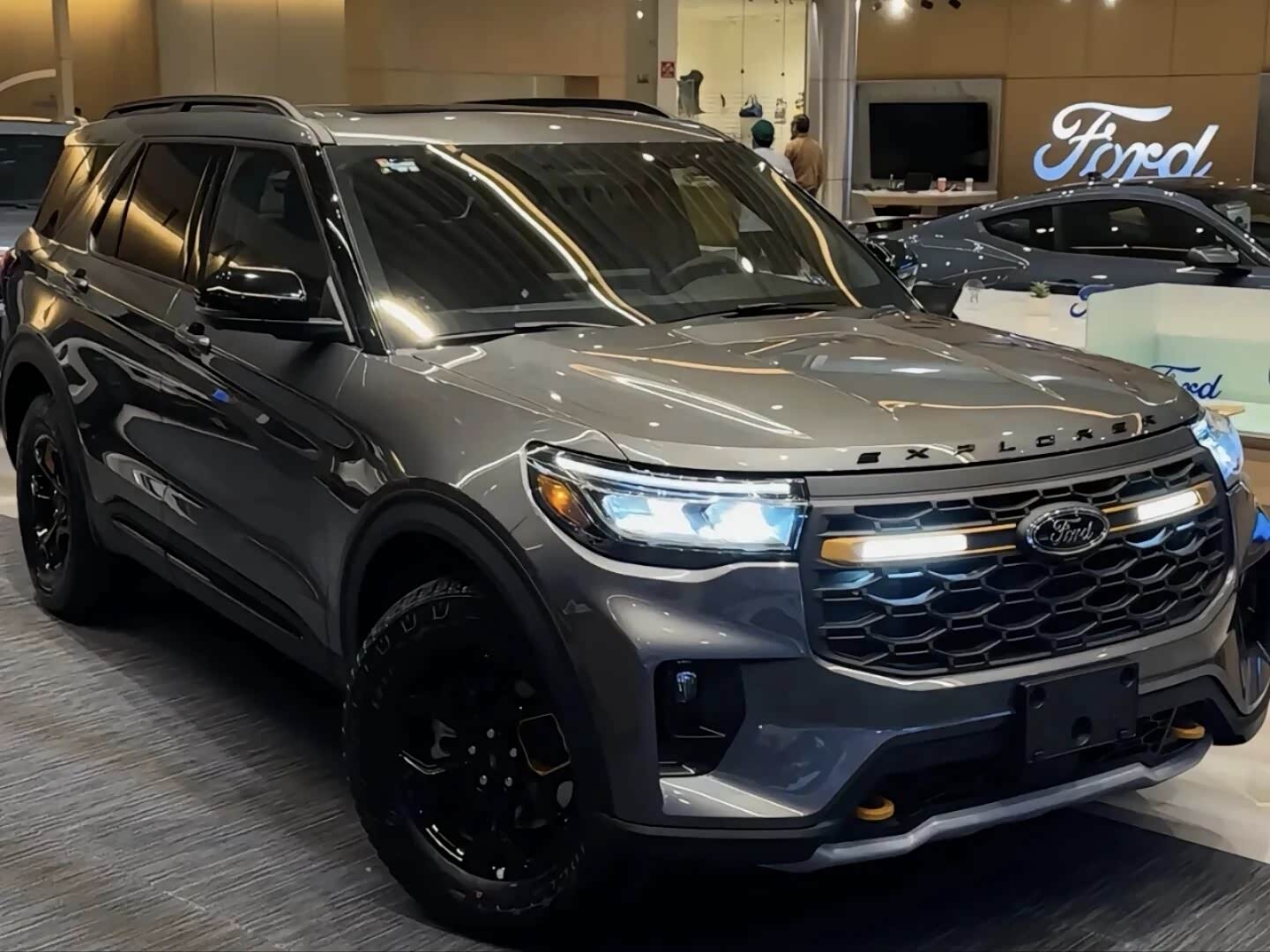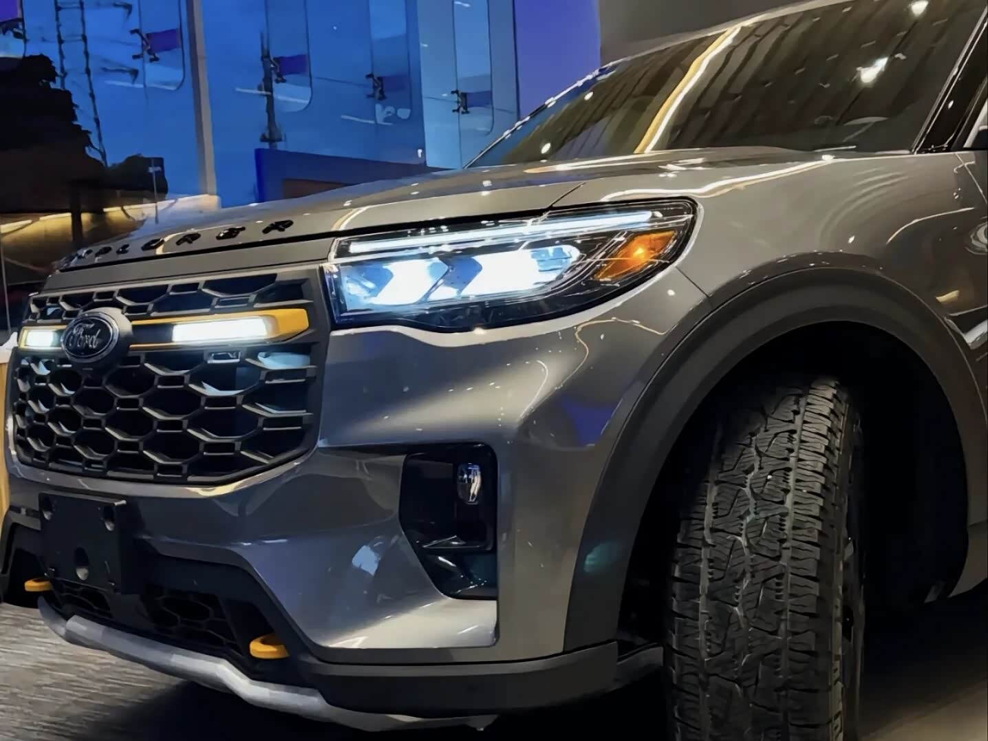 实车的气场比图片更强大。超过5米的车长和硬朗线条,让它在停车场里格外显眼。前脸六边形格栅搭配镀铬装饰,车身侧面平直线条勾勒出典型的美式SUV姿态。