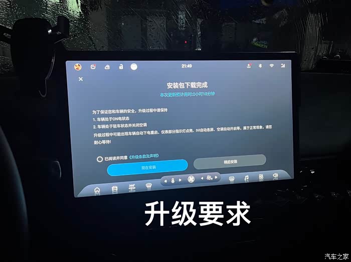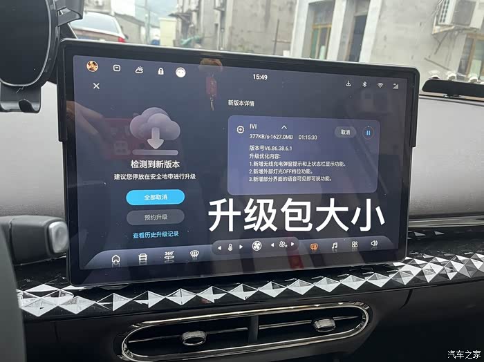 前几天升级了钇为3的车机系统 很多人问升级了哪些内容 这几天我也深度体验了下新系统 下面简单分享一下 新系统大小为1627M 版本号在下面图片里 升级过程需要联网 需要关掉空调 需要保持车辆静止启动状态 升级过程会自己开关大灯和重启屏幕 尽量减少操作 抛开下载时间 升级时间差不多在15分钟
