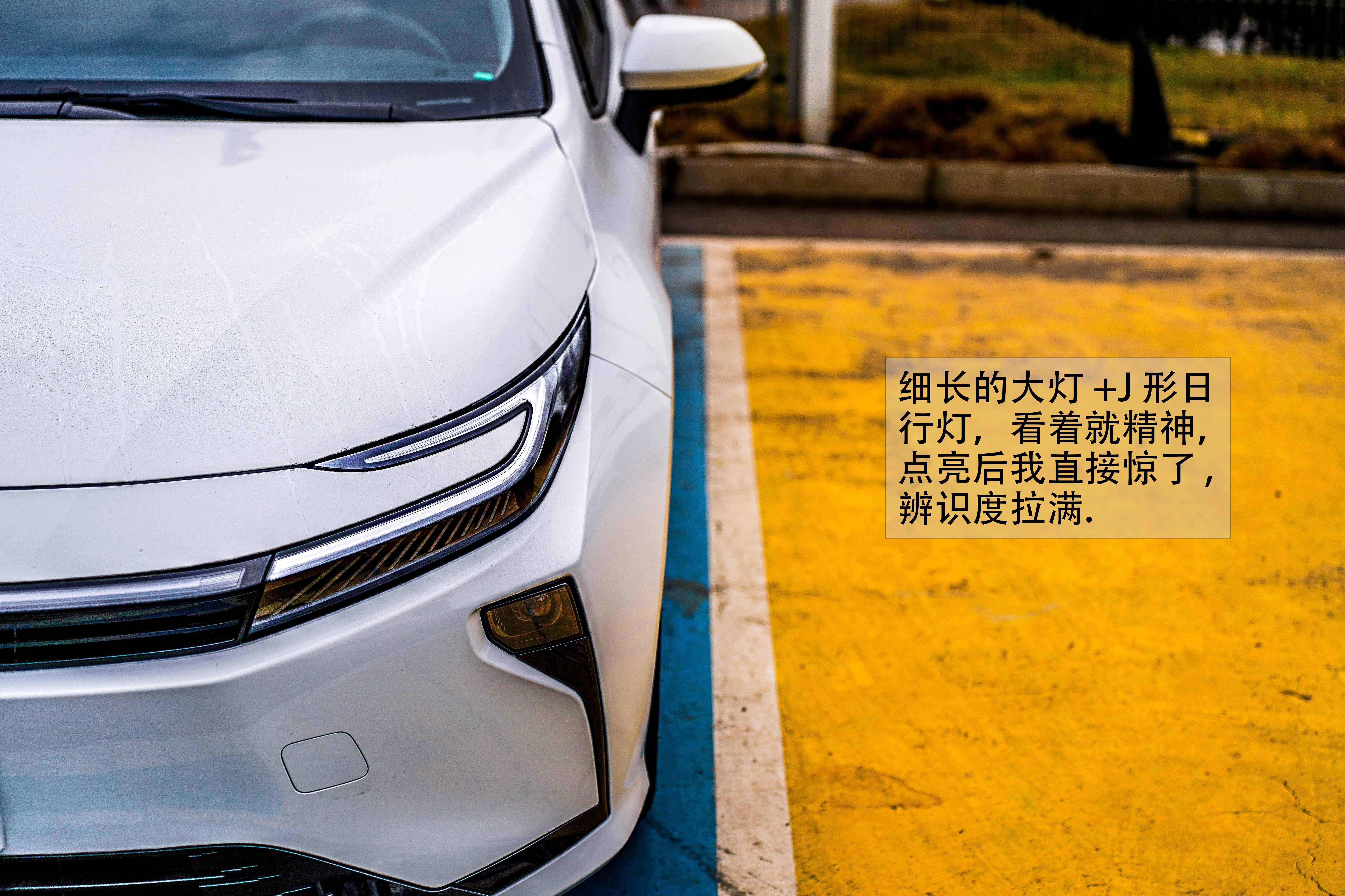 车灯:必须吹爆!细长的大灯 +“J” 形日行灯,看着就精神,亮后我直接惊了 —— 亮度不说,白天也看不太出来,光这这造型亮起来的辨识度就太高了。晚上亮起来辨识度拉满。