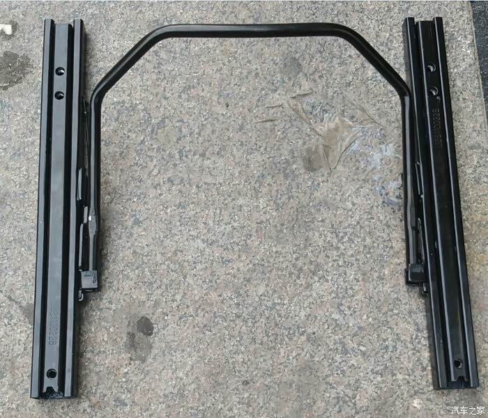 滑道下轨,凸形设计,与座椅下铁架连接。开孔数3个, 3个全部螺丝孔位与原座椅孔位一致。