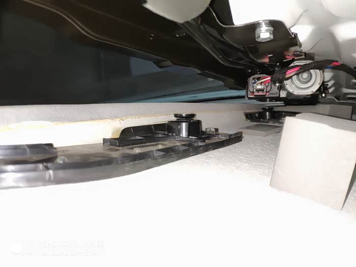 今天拆了顶棚,研究了一下,两根杆没问题,其他的东西离玻璃较远,应该没问题,后来发现一个可能的地方,就是顶棚有两个磁铁,与骨架吸在一起,有可能顶棚变形的时候,导致磁铁与骨架金属碰撞,出现异响。今天解决的方法是,在磁铁上粘贴了一个双面胶,不是一般的双面胶,是粘贴行车记录仪类似的双面胶,耐高温好点。这段时间看看还响不,看看到底是不是这个地方的问题。