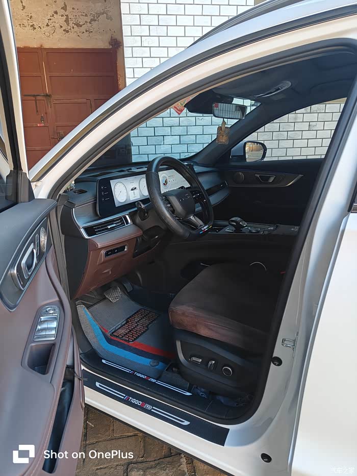当初买这个车就被内饰吸引了,内饰颜色深棕色沉稳大气还耐脏中控皮+仿木相结合正中我心,刚提车时一股新车的味道😃,在太阳下暴晒几天味道就散了比合资良心(用的都是良心棉),唯一遗憾的是氛围灯没拉满,我准备后期找个店把氛围灯安排上,中控布局也很合理,刚好前面放手机还能无线充电(兄弟们要想无线充电快可以把那个垫子拿掉试试),在放水杯和钥匙,最后是档把我还特意买了档把套,方向盘套也必须安排上,tpe材质半包围脚垫也来一套。