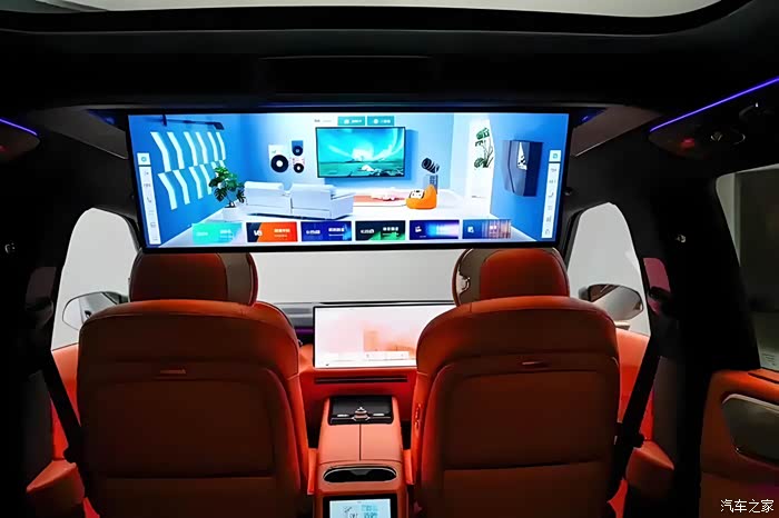 1. 车机大屏:沉浸式交互新标杆?前排30英寸6K无界中控屏与后排同尺寸吸顶屏构成“双巨幕”组合。屏幕采用32:10比例,支持分屏操作(如主驾导航+副驾观影),配合莱茵护眼认证,长时间使用无视觉疲劳。后排吸顶屏支持独立播放或与前排联动,实测播放4K影片时色彩还原精准,拖影控制优于多数竞品。