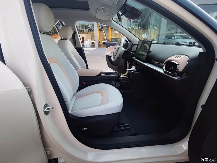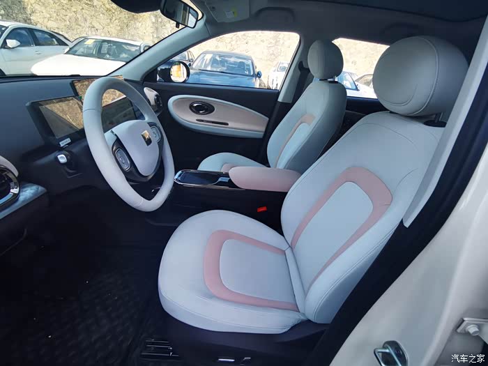 圆型设计的门拉手和淡数粉色的配色+类似圆形的后视镱,看起来更协调。