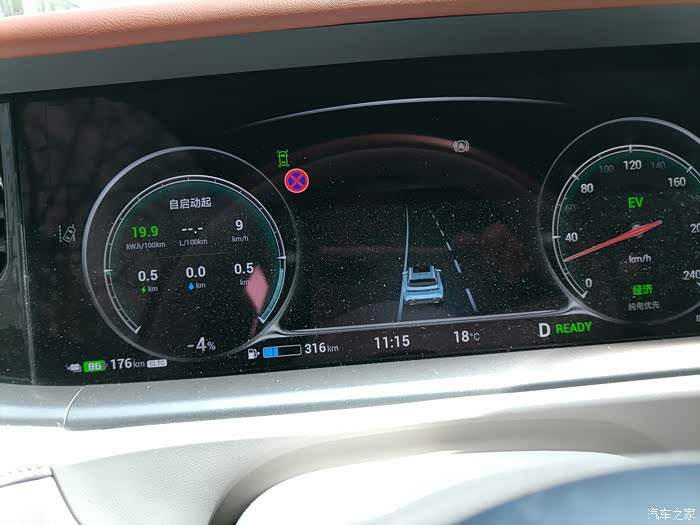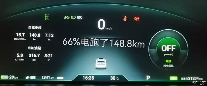 当然,还有一种方法,就是充电到100%,然后纯电模式把电跑完,看看实际行驶的里程是多少。这个我也测试过一次,利用一次周末郊游的机会,跑的有点远,单程大约100km左右,正好可以测试一次CLTC续航。