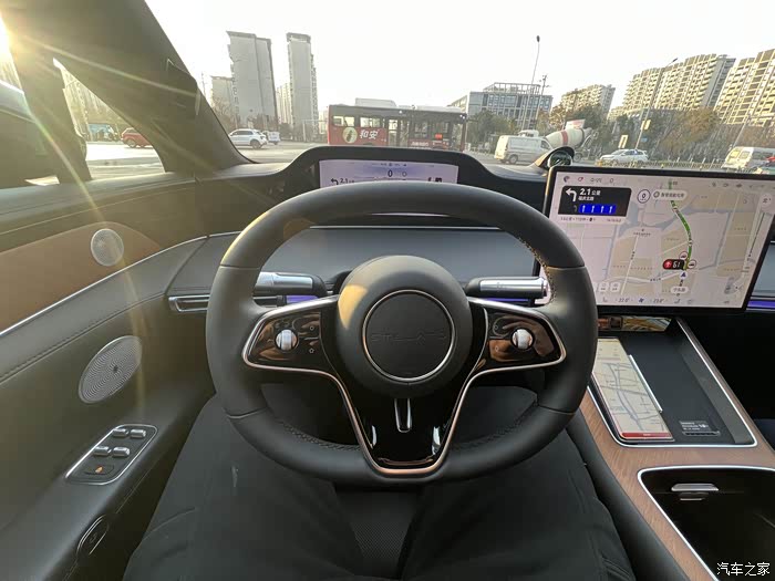 另外额外提一下这台车的智驾,不得不说华为系的智驾在城市道路上确实做的还算是比较好的,这台车也不例外,不太复杂的情况下确实也能一定程度的实现“自己开“,操作也没什么大问题,不过这台车对于驾驶员检测还是比较弱的,即使不碰方向盘也要过一会才有显示,而且轻轻触碰一下或者手搭载上边就没问题,试驾时试驾员看着手机一会轻轻碰一下方向盘车辆也一直处于智驾状态,不得不说还是有点吓人的。