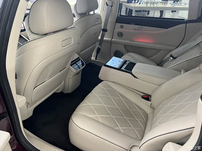 配置上,这台高配车型基本上是应有尽有了,常规的通风加热按摩四座都有配备且效果还算不错,后排的投影也是宣传的卖点之一,比起m9上有所改进,下降时对于前排位置的限制会小一些,不过实际的使用效果还是差点意思,不如直接搞个屏幕好使,后排中间控制的小屏幕可以调角度还是蛮有用的,也可以直接投影确实比m9上方便很多,另外这台车的音响前期宣传还是比较多的,实际听起来效果一般,没有比之前的车型强很多,和对标的一些顶级音响比还是有些距离的。