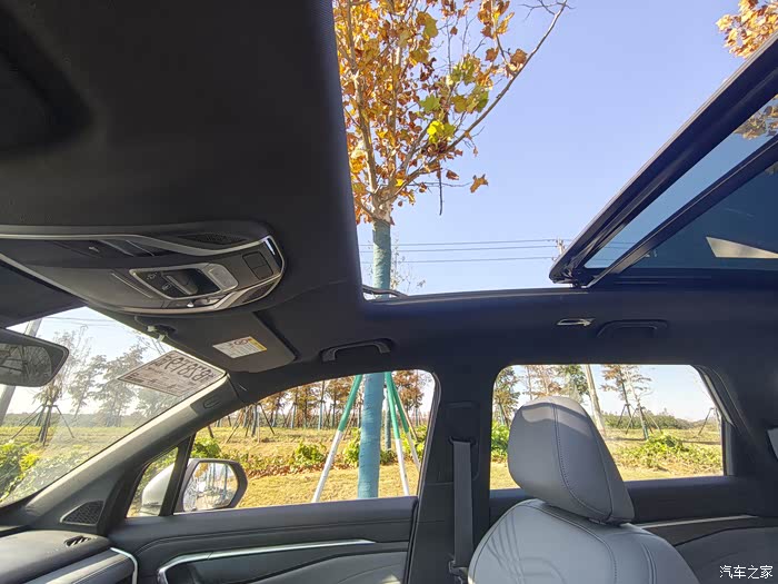 空间无疑是豪越最大的亮点。我选择的是7座版本,采用2+3+2布局。第二排三个独立座椅的设计非常巧妙,每位乘客都能获得相对舒适的乘坐体验。将第二、三排座椅全部放倒后,可以形成一个近乎纯平的巨大空间,实测可以轻松放下一个充气床垫,露营时非常实用。不过第三排座椅更多是应急使用,成年人长时间乘坐会感到压抑。