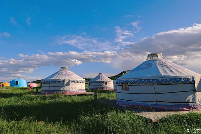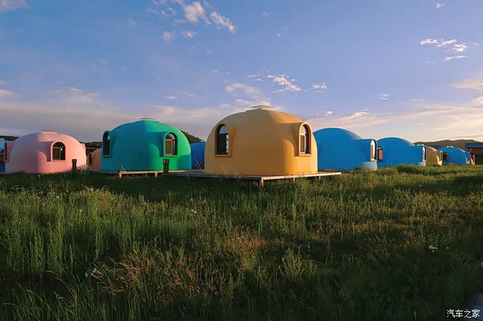初到汗苏鲁,就被它丘陵起伏的欧式草原地貌所吸引。尤其是住宿区的五颜六色的彩虹房、充满地域特征的蒙古包、质朴的小木屋,以及为数不多白色露营帐篷,每一种都是那么的独特,也给了前来的游客更多的选择。