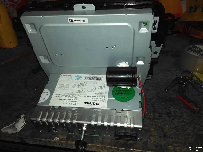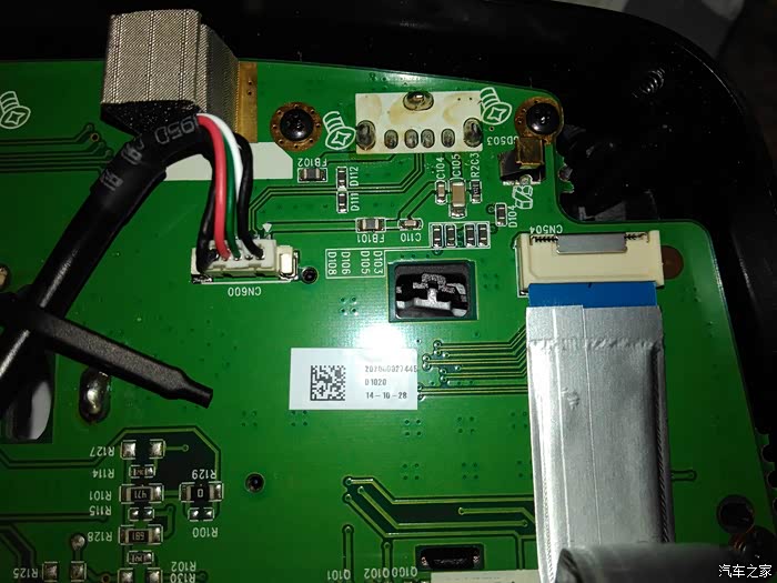 这是主机拆下来的图片,大电容是改功放芯片的时候加的,找到后排usb充电口正极在3脚