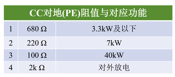 图三 充电枪CC对地电阻所对应的功能