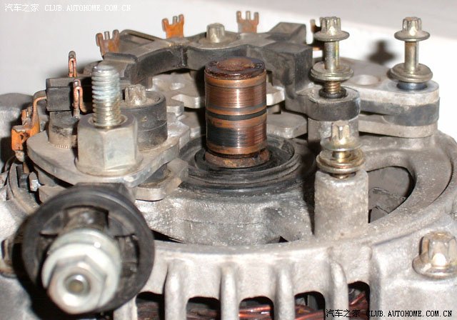 拆下调压器:电刷已经快磨没了,两只电刷磨损程度还不一样