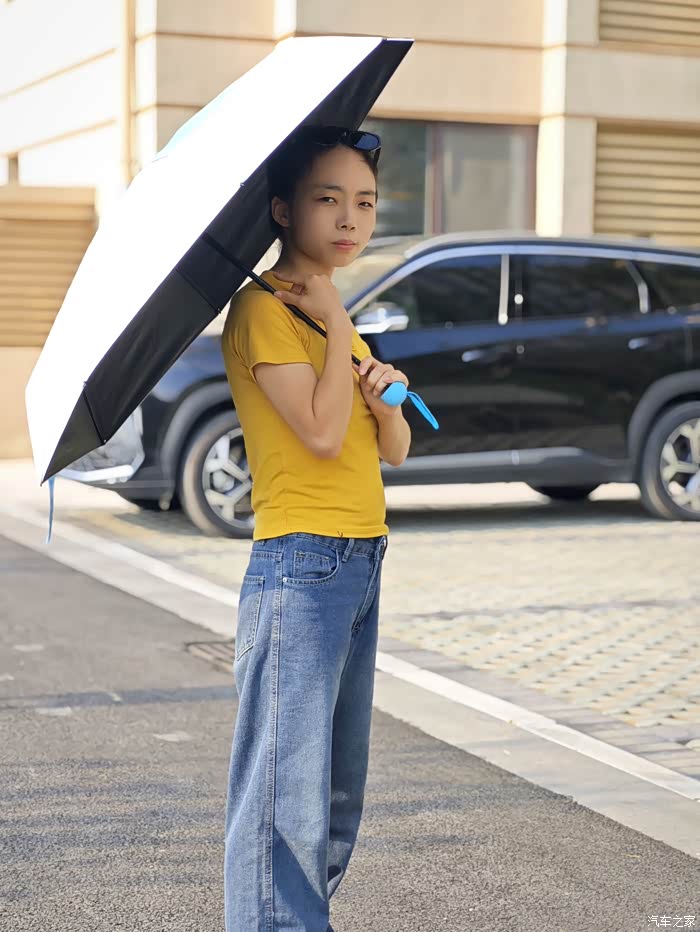 冒着36度高温在室外拍的,这出门不准备个太阳伞,外面待会儿后背都是汗,还好在之家商城兑换的太阳伞派上用场了。