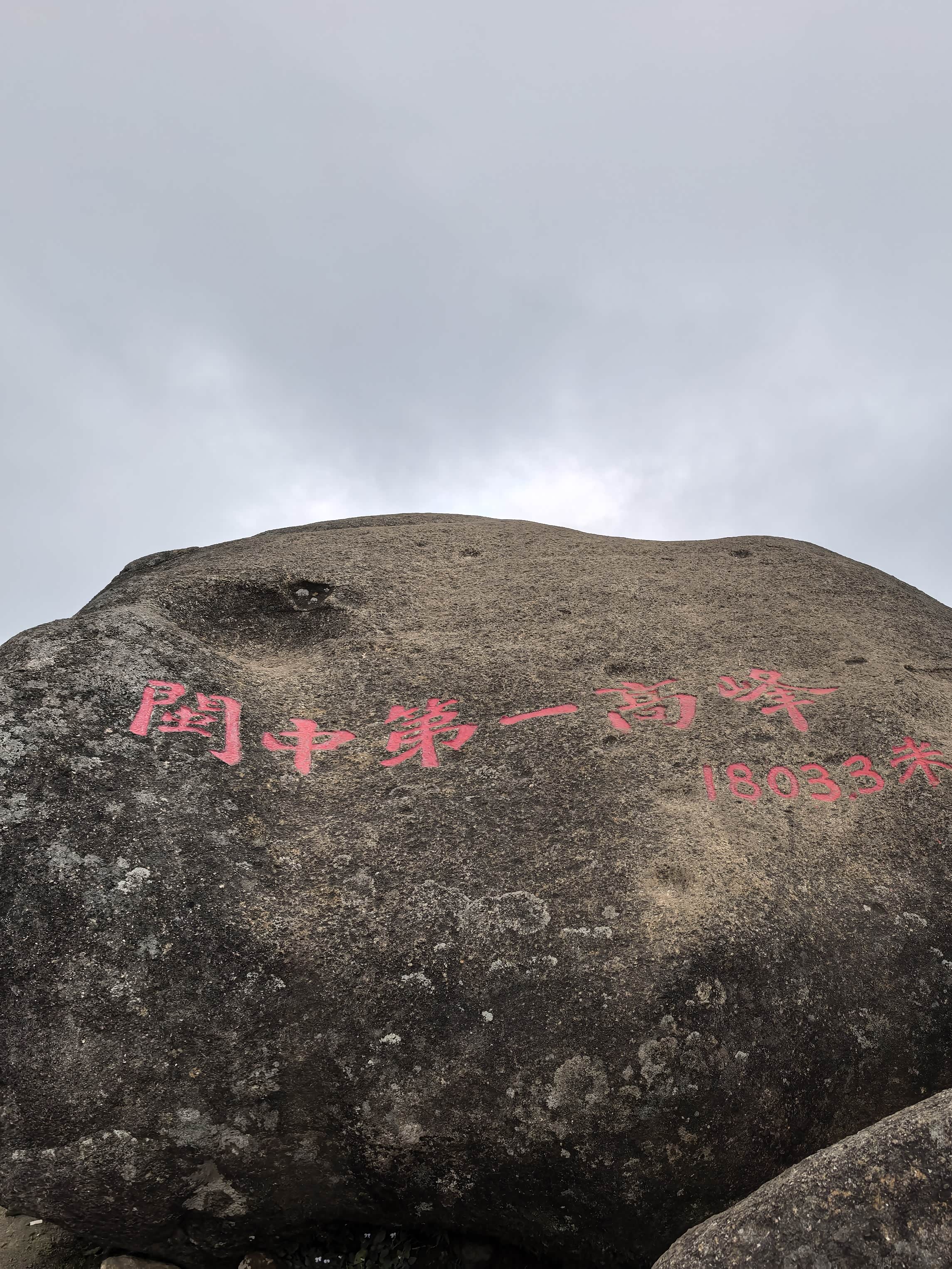 终于到达最高峰。有石刻为证。海拔1803.3米。这个刻有海拔的大石头是每个登山人的必打卡之地。必须来一张挥舞国旗庆祝胜利登顶的照片。