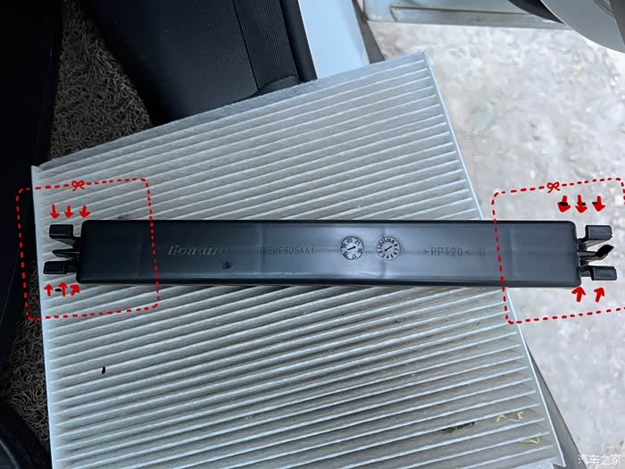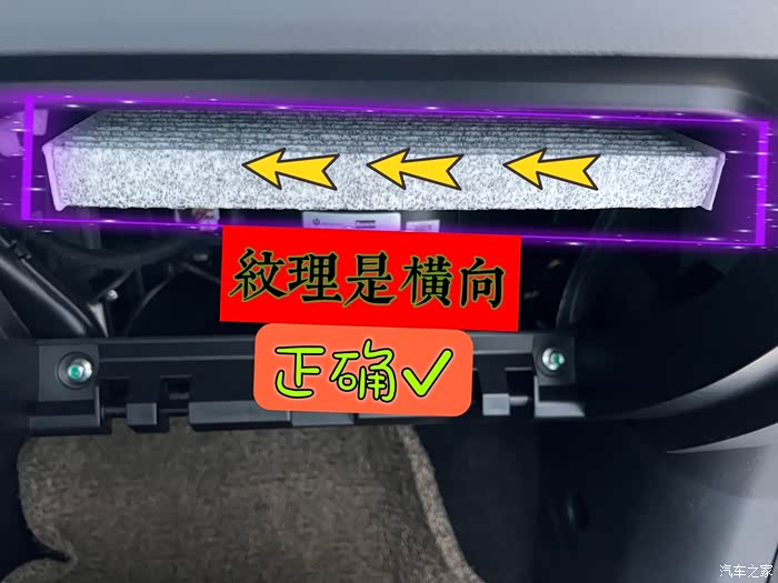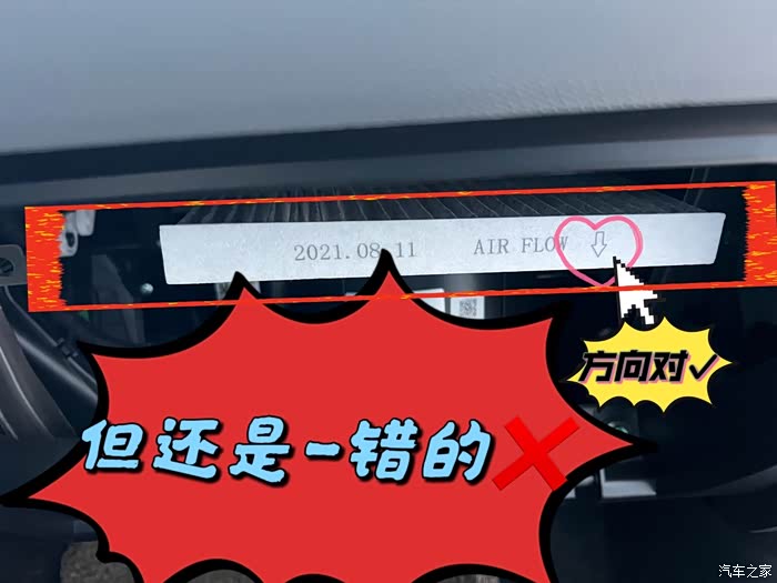 调整姿态和方向,保证满芯拦截作用!放错了,有间隙(左右俩边空荡荡),树叶杂物可以掉进了空气管道和吸入空调泵,就废了!